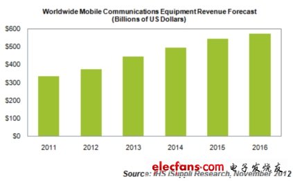 电子发烧友网讯【编译/vincent】:日前,IHS iSuppli市场研究公司调查显示,尽管在今年不利的宏观经济条件下,囊括了智能手机、平板电脑以及基础设备的移动通信设备市场也将逆势增长13%!