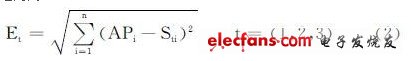 假设有n个AP,m个参考标签,则AP点接收到的待定标签的强度量P=(AP1,AP2,…,APn),采集到的第t个参考标签的强度矢量为St=(St1,St2,…,Stn),则待定标签和参考标签St之间的欧氏距离为: