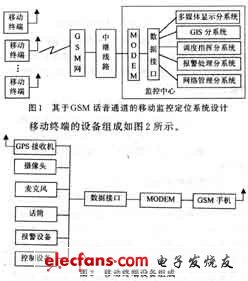 利用GSM的话音通道传输数据和在普通电话线上一样,在收发两端通过MODEM调制解调进行数据通信,这种方法技术成熟,应用范围广,在GSM网覆盖的范围内均可使用,缺点是在数据传输之前需要先拨号,呼叫建立时间较长,一般为10s左右,而且通信费用与移动电话费相同,费用较高。采用这种方法建立的移动监控定位系统如图1所示。