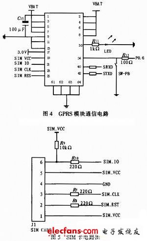 GPRS无线通信模块采用Simcom公司的SIM300GSM/GPRS双频模块。主要为语音传输、短消息和数据业务提供无线接口。适合于开发一些GSM/GPRS的无线应用产品。同时,SIM300模块中集成了TCP/IP协议栈,并为用户提供了扩展的TCP/IP AT命令,使用户可以轻松地使用TCP/IP协议,实现GPRS网络与Internet网络的顺利接入。