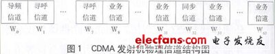 图1是以64威尔士码为例的CDMA蜂窝系统的物理信道结构图,含1个导频信道、1个同步信道、7个寻呼信道和55个业务信道。
