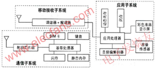 图2:电视手机系统主要由通信子系统、应用子系统和移动接收子系统组成。