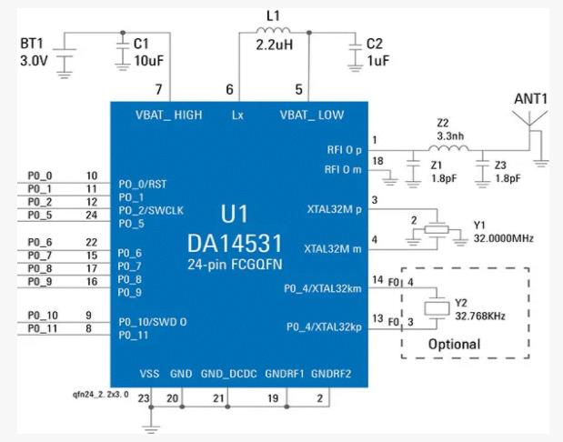 例如,蓝牙5.1DA14531采用微型2.0mm x 1.7mm封装,尺寸仅为其他领先制造商产品的一半。最重要的是,它仅需六个外部无源元件,并使用单一晶振进行时序输入。