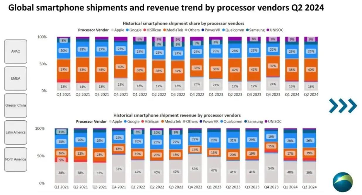 Q2手机SoC出货量:联发科领跑,紫光展锐出货量飙升,海思回归榜单