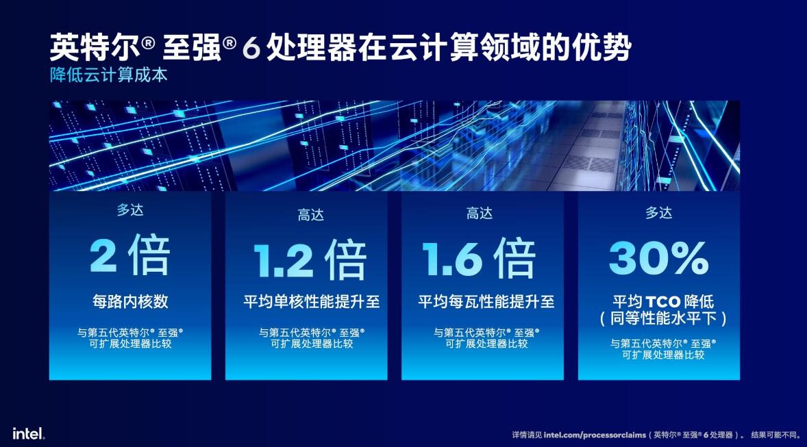 他强调:“英特尔至强6性能核处理器更多核心、更高性能与带宽的属性可为客户提供更优的算力性能,在科学计算、关键数据、中小规模AI推理、云计算等场景具备明显的算力优势。”