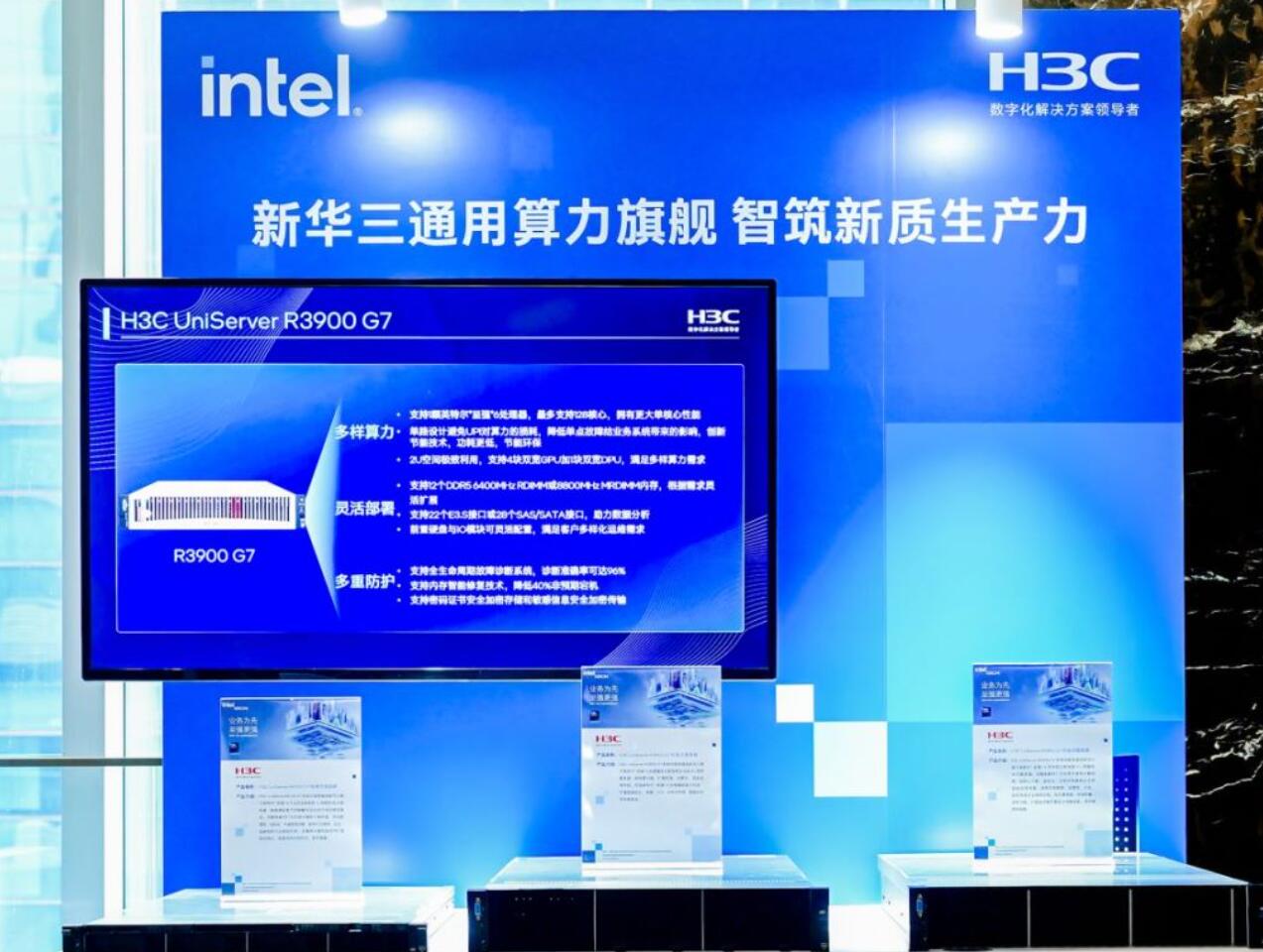 在英特尔大会展区,记者见到了联想、浪潮、超聚变、中兴、新华三基于至强6性能处理器发布的新品。