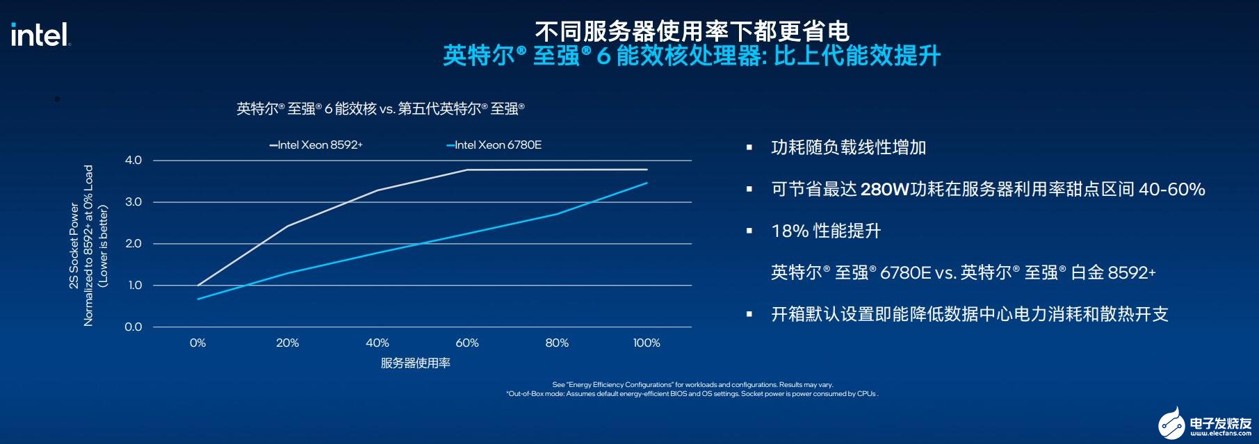 6能效核处理器具有显著的密度优势,对于有产品迭代需求的用户而言,能以3:1的比例进行旧系统替换和机架整合。