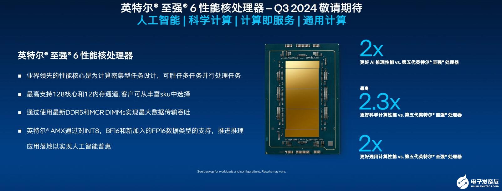 英特尔专门为AI和高性能计算负载打造更多产品,针对这方面需求,英特尔计划在第三季度发布至强6性能核处理器,它建立在同样的软件栈上,拥有更强的性能核处理能力,帮助客户应对相关需求。