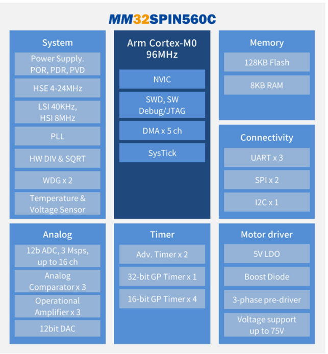 MM32SPIN560C 框图如下图所示: