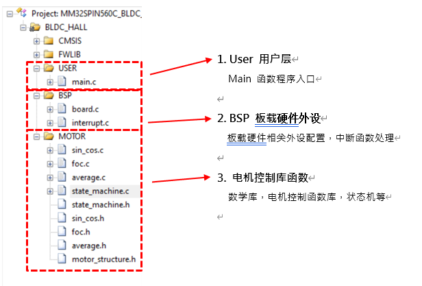 世平提供的 FOC 软件结构如下图所示,这套软件具有如下特点: