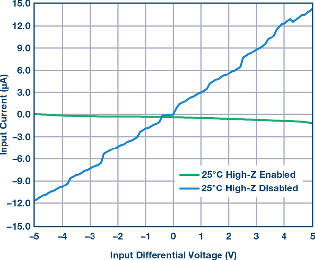 图3. 在高Z使能/禁用条件下的AD4003 ADC输入电流与输入差分电压