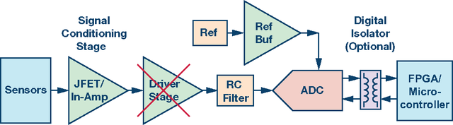 借助AD4000/AD4003 ADC降低的输入电流,就能以比传统SAR高得多的源阻抗来驱动。这意味着,RC滤波器中的电阻值可以比传统SAR设计大10倍。