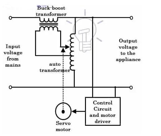 对于分接变压器型稳定器,根据所需的升压或降压电压量切换不同的抽头。但是,在汽车变压器型稳定器的情况下,电机(伺服电机)与滑动触点一起使用,以从自动变压器获得升压或降压电压,因为它只包含一个绕组。