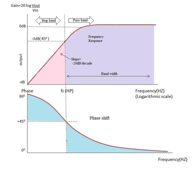 高通滤波器允许的频率带称为“通带”,该通带只不过是滤波器的带宽。滤波器衰减的频率带称为“阻带”。