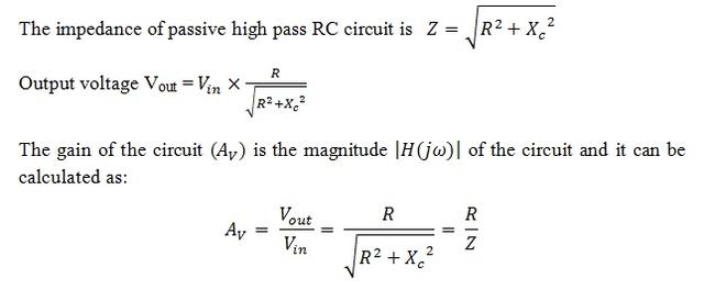 在非常高的频率下,容抗变为零,然后输出电压与Vout = Vin的输入电压相同。在低频下,容抗是无穷大的,因此输出电压为零,因为电抗会阻止电流进入电容器。