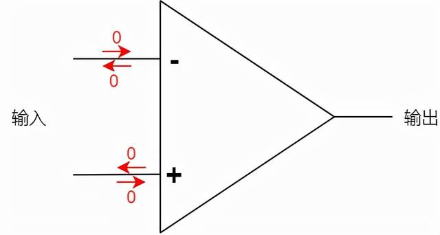 理想运放的输入阻抗无限大,因此不会有任何电流流入或流出运放的输入引脚: