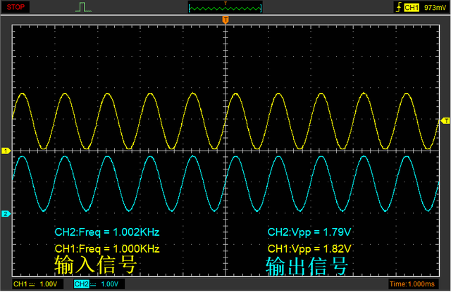 也可以输入一个正弦波信号,输出同样跟随输入: