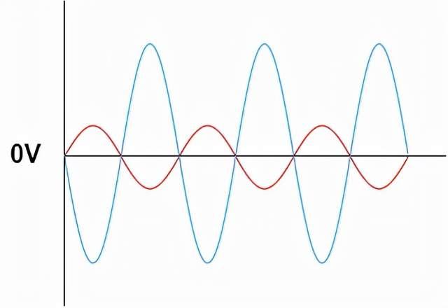 反相放大器的典型波形如下图,红色表示输入信号,蓝色表示输出信号: