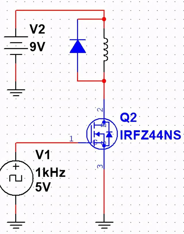 现在,当场效应管关闭时,电流有了回流路径。感应电动势将通过二极管返回电源。