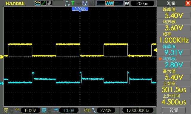仅仅添加了一个小小的二极管,毛刺完全消失。
