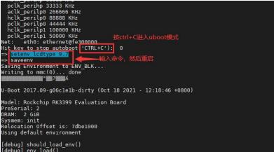 2 烧写完 Ubuntu 镜像,需要进入 uboot 模式下,设置屏幕环境变量,这里作者使用的 LVDS 9.7 寸屏, 所以设置环境变量,如下图所示。注意这里环境变量的设置要根据自己连接的屏幕尺寸进行设置。设置完毕,重新启动开发板,lvds 9.7 寸屏上的桌面正常显示。