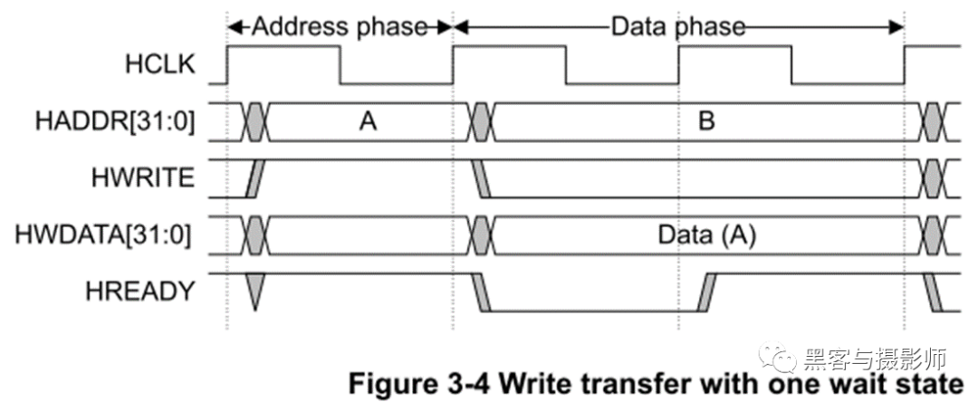 当传输由具有等待阶段通过延长address阶段进行延长时,那么对接下来的传输具有副作用。3.5是包含地址不相关的3次传输,A,B和带有一个等待周期的C传输。