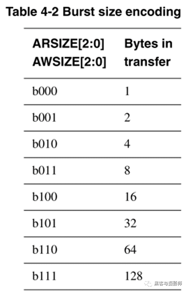 后面统一使用AxSIZE表示,AxSIZE使用3bit表示,具体的译码方式参见下图: