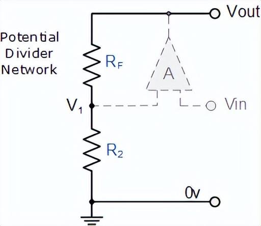 同相运算放大器的反馈控制是通过将一小部分输出电压信号通过Rƒ – R1分压网络应用回反相 ( - ) 输入端,再次产生负反馈来实现的。这种闭环配置产生一个正相放大器电路,具有非常好的稳定性、非常高的输入阻抗Rin接近无穷大,因为没有电流流入正输入端子和 低输出阻抗Rout ,如上图所示。