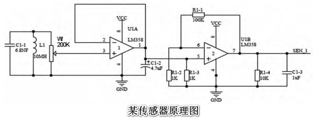 左侧的358组成了电压跟随器电路,引脚3上的电压就是输出电压。接着再作为右侧的同向运算放大电路的输入。最终在7脚上输出了一个放大100倍的电压。