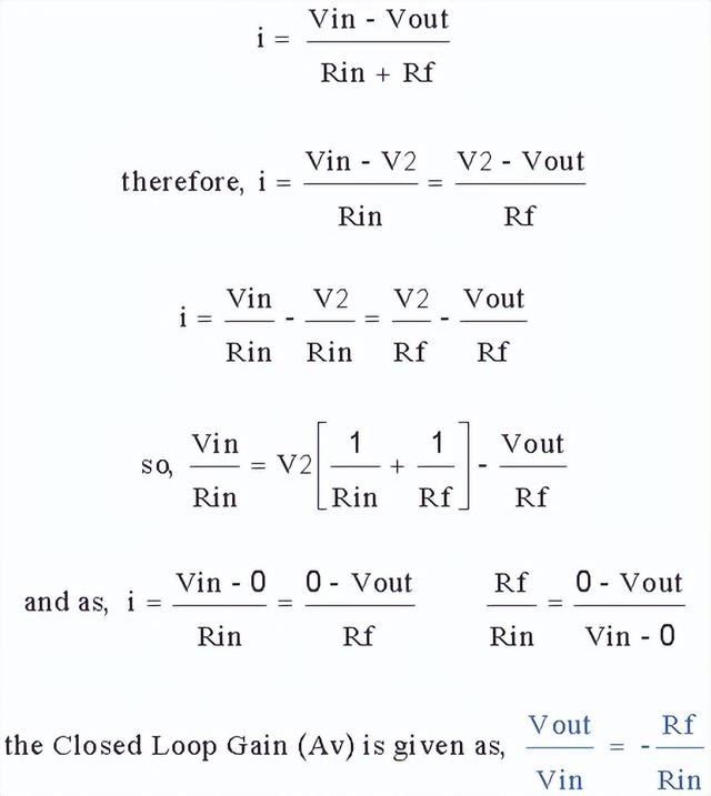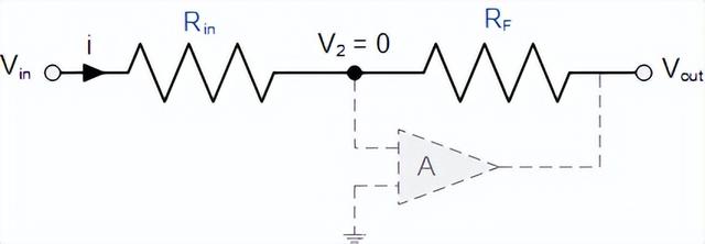 就是说反向放大器的增益是由反馈电阻Rf和输入电阻Rin共同决定的。 而不再是一个很大的增益。