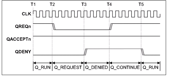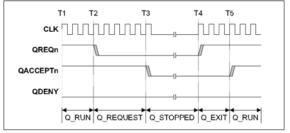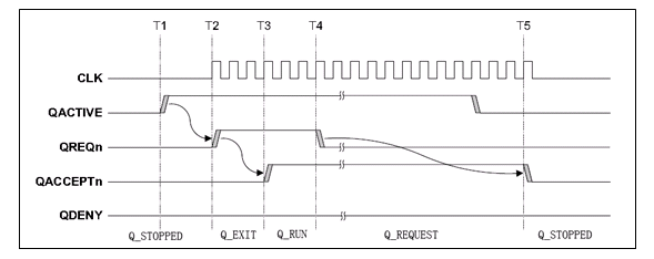在T1,QREQn和QACCEPTn为高,Q_Channel进入Q_RUN状态。