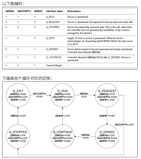 ARM对Q-Channel的interface,定义了几种握手状态: