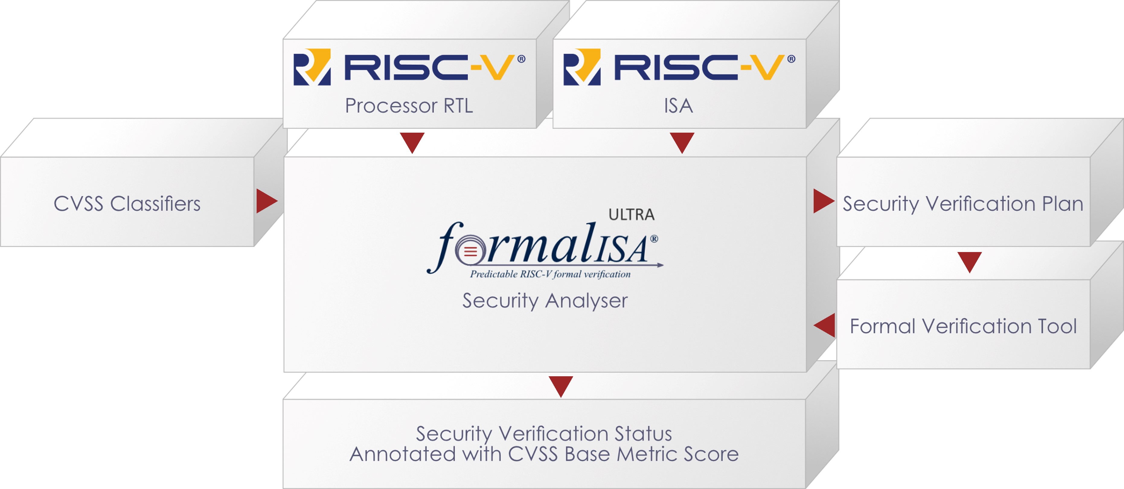 这种方法可用于任何处理器设计,但RISC-V ISA因其在整个电子行业中的广泛采用而特别令人感兴趣。ISA 有许多实现可作为开源 RTL 使用,为任何新的验证工具或方法提供了大量实际测试用例。图 2 显示了如何使用 formalISA 验证任何 RISC-V RTL 处理器设计的安全性,[FormalISA]是一种可与任何商业形式验证工具配合使用的安全分析器。