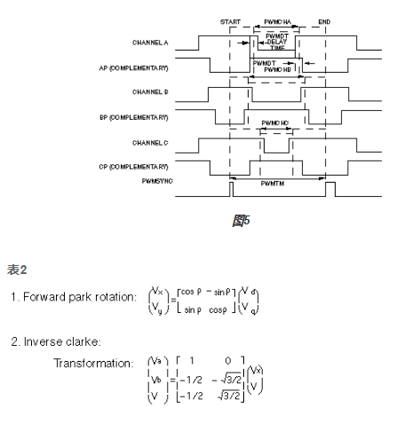 正向变换转换两个正交转子参考电压 Vd和 Vq,到三相定子电压信号,I一个我b和我c.变换由两个阶段组成(表2),其中ρ是转子场的角度。