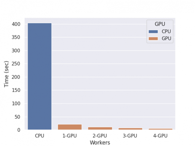 在前面的部分中,我们将演示早期停止、形状值计算、自定义目标以及最终推断。下表显示了具有不同工作线程数的 GPU 集群的端到端加速。