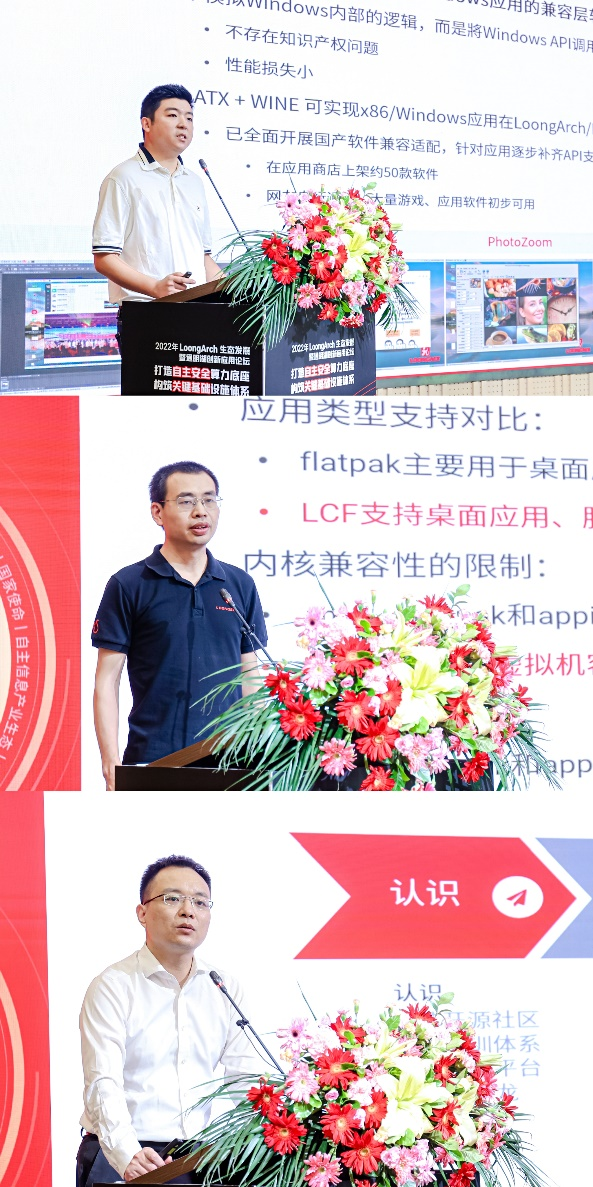 (从上至下依次)龙芯中科资深工程师曾露、龙芯中科操作系统研发总监王洪虎、龙芯中科投资管理部总经理王伟方