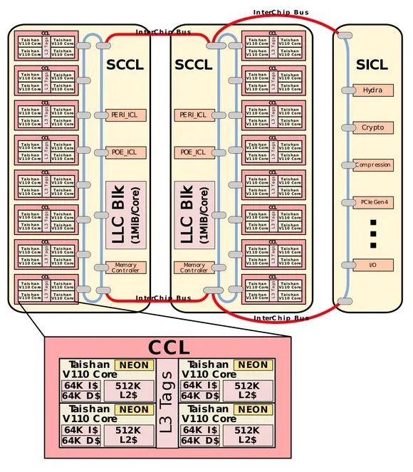 图1 鲲鹏920内部架构图