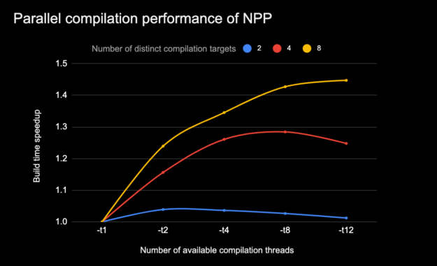 图 7 。为多个 GPU 架构编译 NVIDIA 性能原语( NPP )的并行编译加速。