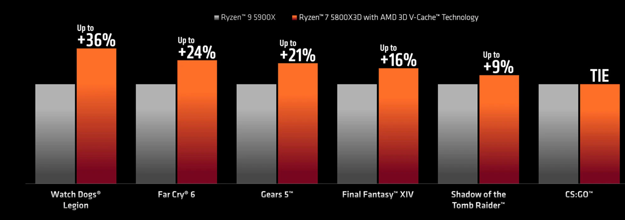 Ryzen9 5900X与Ryzen7 5800X3D的性能对比 / AMD