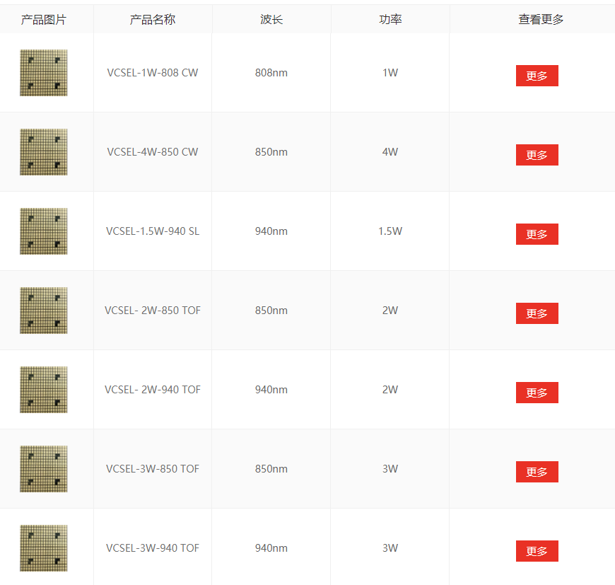 长光华芯VCSEL产品
