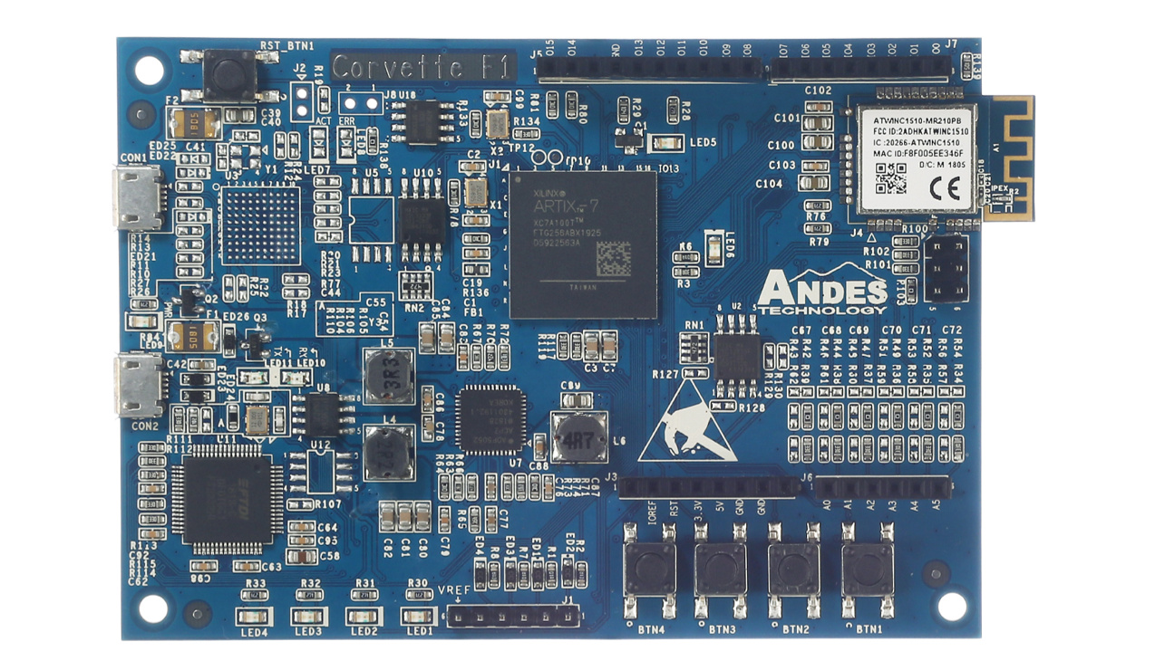 认证的开发套件中,就有晶心科技的Corvette-F1 N25和SiFive的Learn Inventor。Corvette-F1 N25是一款基于