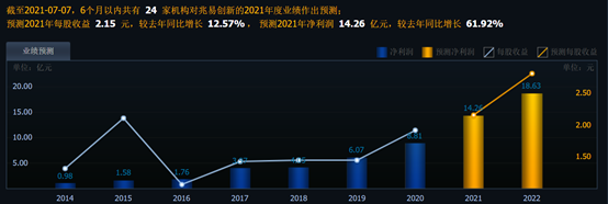 图:近7年来,兆易创新的净利润情况及未来两年预测(数据来源:同花顺)
