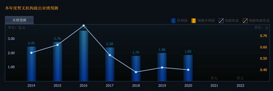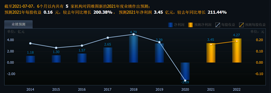 图:近7年来中颖电子的净利润情况及未来两年的预测(来源:同花顺)