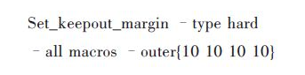 本芯片需要定位的Macro 有SRAM、ROM、ADC 以及ANALOG_TOP,本文综合考虑它们与IO 的位置关系将它们定位于芯片的四周,这样可以芯片中保留成片的空白区域来放置标准单元。为了保证Macro与PAD 及标准单元之间的互联线,在每个Macro的四周这只一个空白区,这个区域内任何情况不允许摆放标准单元。具体命令如下: