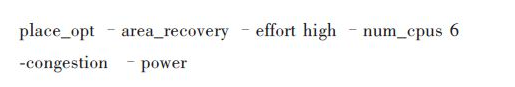 要求工具对除关键时钟路径外的其他面积进行修复,努力程度高,通过选项“-congestion”控制工具尽可能的降低芯片的拥塞度以便利后续布线,通过选项“-pow-er”控制工具优化泄漏功耗、动态功耗并且进行低功耗布局。
