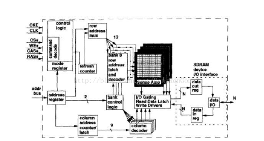 要存取数据时,先选中一行( wordline加高电位),于是这一行上挂着的所有的行选通NMOS都导通,电容中的数据就沿着bitline进入感应放大器,经其放大后到达列选通NMOS处。接下来,当某根CSL置高后,相应的列选通NMOS就导通,数据沿着bifline继续向IO接口传,或者外面的数据立即写入存储阵列。当然,具体实现肯定更复杂,但是基本原理就是这样