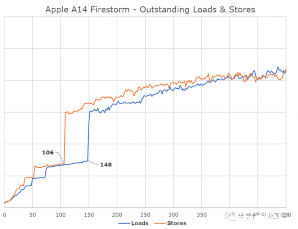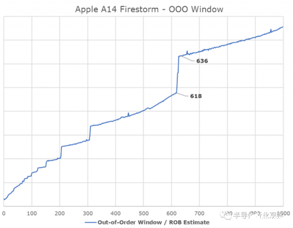 苹果公司最近的设计中,有一个方面我们从来没有真正能够具体回答,那就是他们的无序执行能力有多深。我们在此问题上获得的最后官方资源是2013 Cyclone设计中ROB(重排序缓冲区)的192数字。再次感谢Veedrac实施的测试似乎暴露了µarch的这一部分,我们似乎可以确认Firestorm的ROB在630指令范围之内,这是对去年的A13 Lightning内核(在560中测得)的升级。目前还不清楚这是否与其他架构中的传统ROB相同,但测试至少暴露了与ROB相关的微架构限制,并暴露了行业中其他设计的正确数据。无序窗口是指当内核试图获取并执行每条指令的依赖关系时,内核可以“停放”的、等待执行的指令数量。