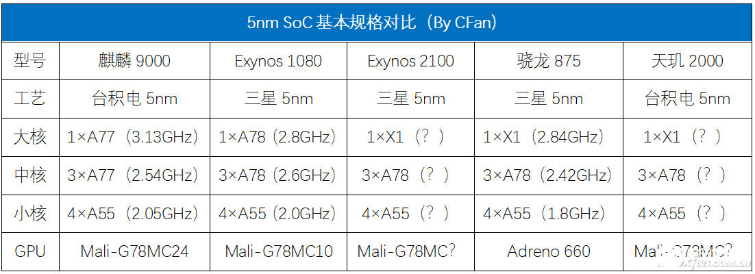 换句话说,2021年的SoC如果不能用上5nm,那都不好意思称为高端。