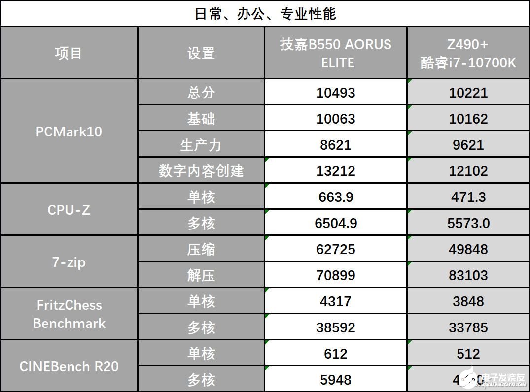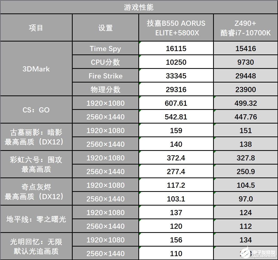 看到这些成绩,大家应该对这款主板的支持能力不再怀疑了吧,锐龙7 5800X处理器与RTX 3080显卡都可以流畅地运行,成绩则与高端平台没有什么差别,同样可以在日常、办公性能和游戏性能两方面都“吊打”酷睿i7-10700K平台。其实这也不奇怪,我们之前的文章中就提到过,锐龙5000的总功耗其实并不高,即使是锐龙9系列的产品,处理器总功耗也不到150W,所以对供电系统的性能更偏向于冷静而不是过于巨大的电流,这一点B550M AORUS ELITE完全不在话下,它采用数字供电控制芯片搭配低电阻式晶体管设计,控制精度更高、温度则更低。