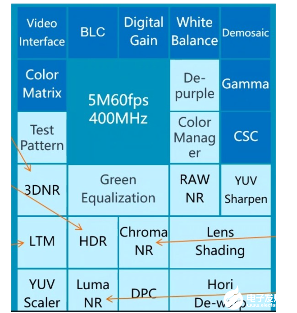 正如此前的“周易”AI和“星辰”CPU产品线,“玲珑”ISP也强调客户的可定制、可配置化。从“玲珑”ISP(图为i5)的架构图来看,深蓝色部分为基础的硬件结构,浅蓝色部分为可配置的结构——即用户可以根据不同的场景、不同的模组、不同的应用领域,在不同的降噪手段、不同的性能特点以及成本特点上达到一定的平衡。